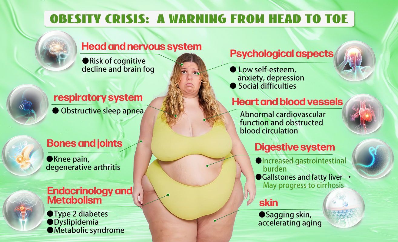 The root cause of obesity lies in hormonal imbalances and metabolic dysfunction. A sluggish thyroid reduces fat-burning efficiency, while chronic stress elevates cortisol levels, leading to excess abdominal fat. Insulin resistance causes excess sugar to be stored as fat, and poor lymphatic circulation results in toxin and fluid retention, exacerbating bloating and fat accumulation. Additionally, impaired leptin regulation in the liver disrupts satiety signals, driving overeating and creating a vicious cycle. Modern lifestyle factorsâhigh-sugar, high-fat diets, sleep deprivation, and lack of physical activityâfurther slow metabolism, making fat even harder to burn. Over time, obesity doesnât just affect appearance; it also increases the risk of serious health issues, making early intervention crucial.